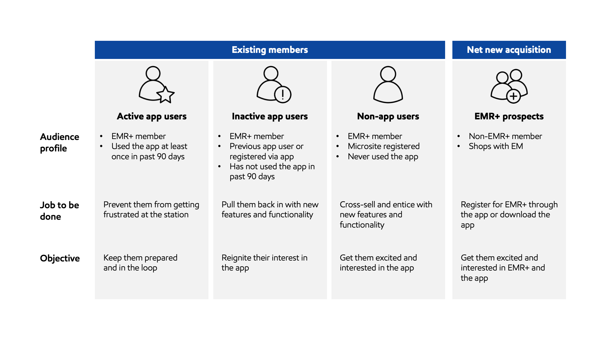 Global fuel brands Exxon Mobil created a marketing campaign for the Exxon Mobil Rewards+ app platform updates to inform members of upcoming changes and action required but weren’t sure about implications.